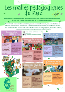 Afin de vous accompagner dans la mise en place de vos projets d’éducation au territoire, le Parc met à votre disposition une vingtaine de malles pédagogiques.